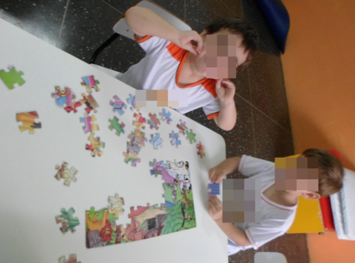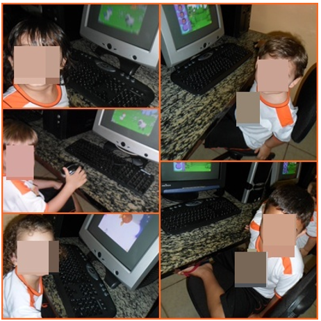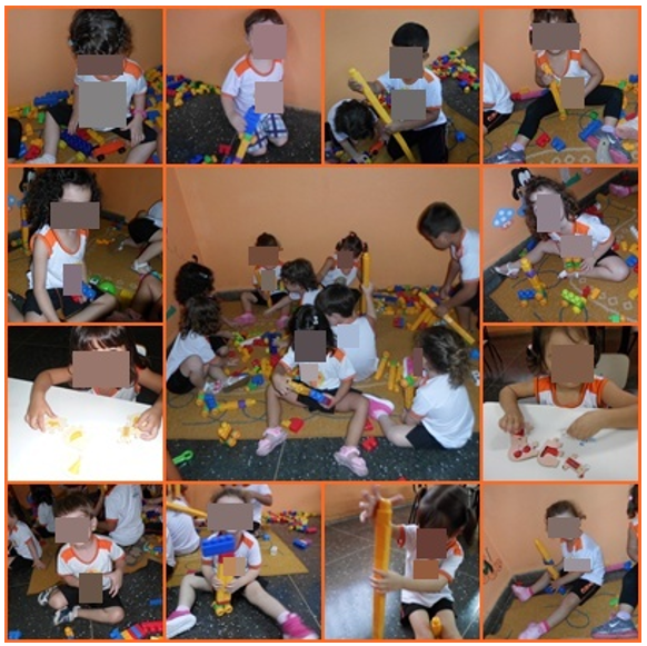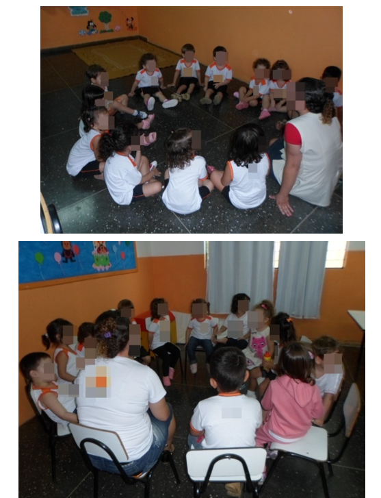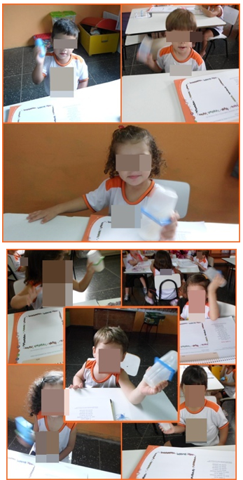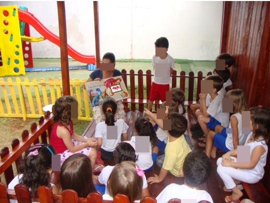 As fotografias utilizadas foram tiradas no nosso local de trabalho, como não houve uma iniciativa para solicitar autorização de seu uso por parte dos pais das crianças, foram colocadas uma tarja para não haver identificação dos alunos, nem da escola, por motivos éticos.