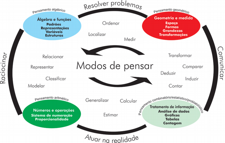 É importante analisar o diagrama que indica os diferentes modos de pensar e os conceitos que estruturam a matemática (PCN’s de Matemática fundamental, 1998):